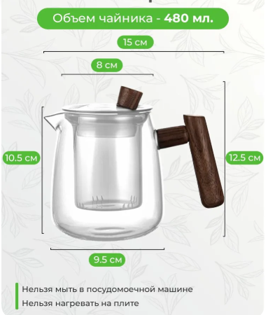 Заварочный чайник из жаропрочного стекла заварочник с фильтром