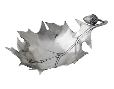 Блюдце в форме листа для приправы прекрасно подходит для любого осеннего стола. Литье чистого олова прекрасная ручная работа, напоминающее красивый лесной лист, это блюдо для приправы прекрасно подходит для обеда, сыра и всех ваших любимых приправ. Красивый подробный желудь на ручке (стебле) листа добавляет последний штрих к дизайну.