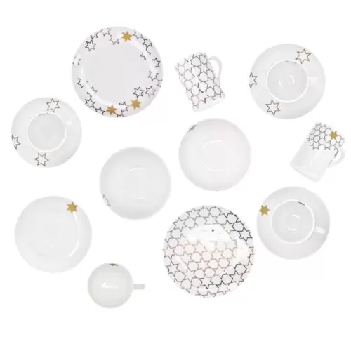 Дополните свою посуду кружкой DUKA Felicia Art Deco и почувствуйте себя настоящей звездой! С первого взгляда он привлекает внимание своей изящной формой, безупречно белой фарфоровой поверхностью и золотым орнаментом в виде звезд. Благодаря этому кружка DUKA Felicia Art Deco станет любимым спутником утреннего кофе и послеобеденного чая, а ее тонко очерченное ушко гарантирует, что вы не прольете ни капли любимого напитка. Выбирайте практичные и стильные решения на своей кухне и пригласите на нее кружку DUKA Felicia Art Deco!